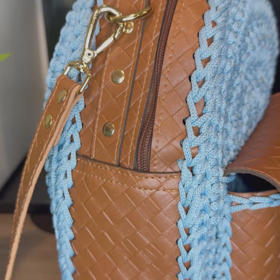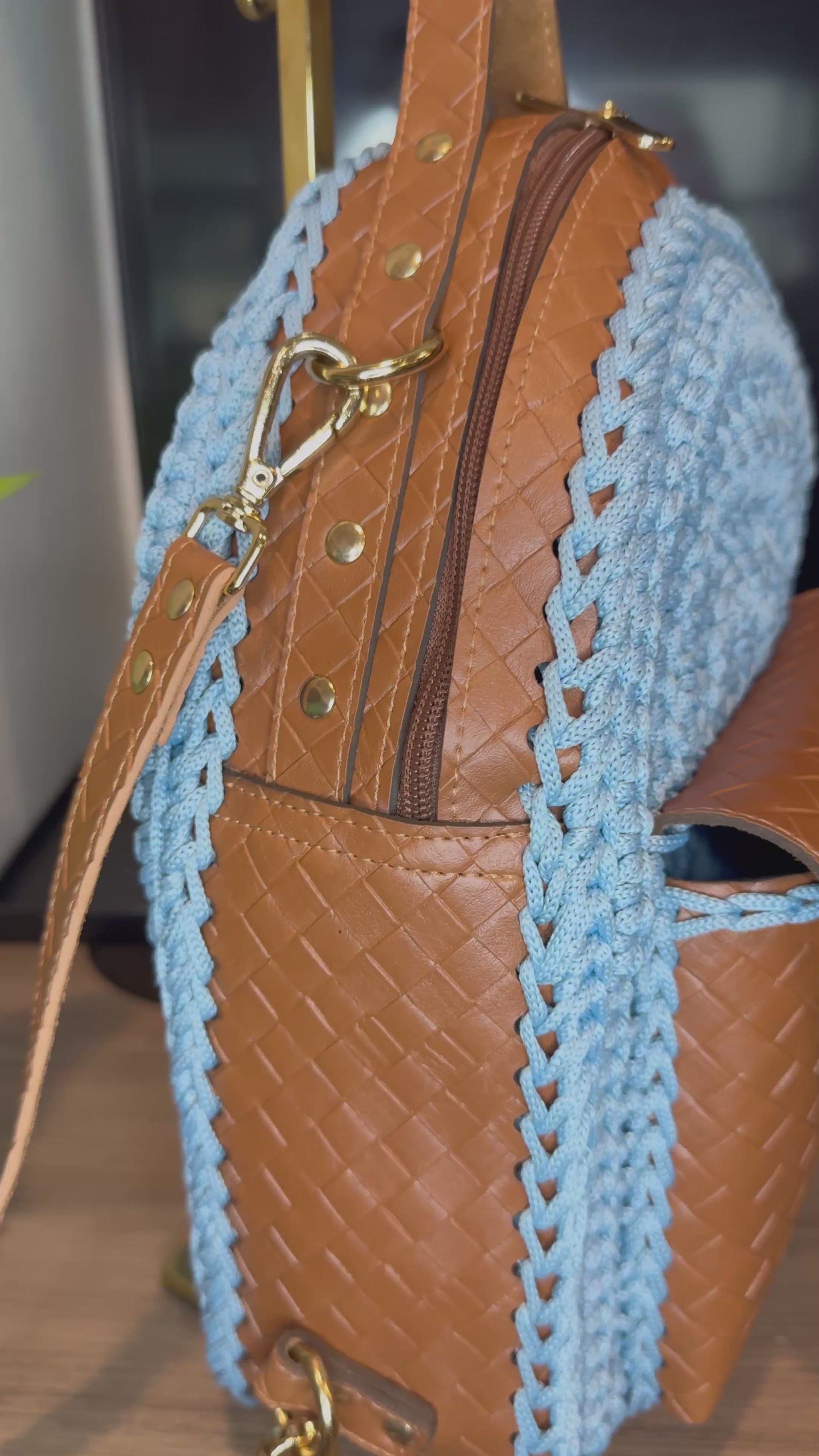 Crochet hand made backpack ,vegan leather with Inspira poliéster premium