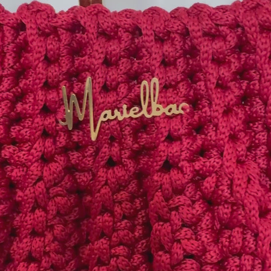 Cross body Crochet bag with Inspira Poliéster Premium. Pomegranate Red